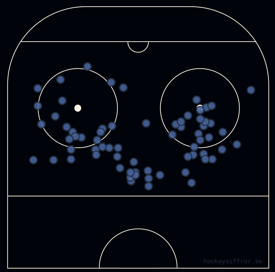 Dom tre spelare i SSK som har skjutit flest skott i PP är Blomstrand, Norbe och Videll som tillsammans har avlossat 63 avslut. I Björklöven är det Myles Powell, Liam Dower Nilsson och Nick Schilkey som skjutit flest, 60 avslut tillsammans. Det vill säga nästan identiskt antal skott, men titta på skottkartorna där man ser varifrån skotten har kommit ifrån så skiljer dom sig markant ifrån.